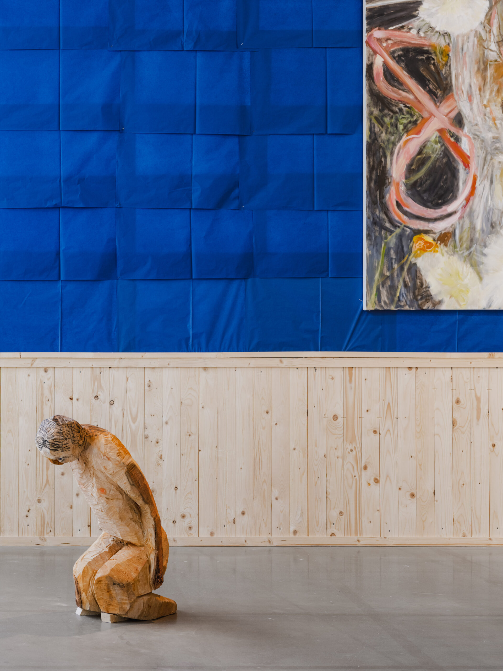 Kvinna med tankar i utställningen “Playa! konst som poesi i Norden” på Bonniers Konsthall 2025.
